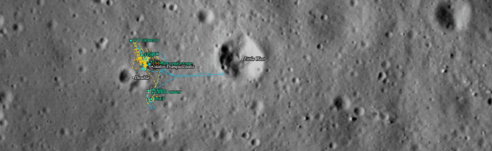 Le missioni Apollo hanno lasciato sulla Luna numerosi strumenti, moduli di atterraggio e tracce lasciate dagli astronauti e dai rover. Negli ultimi anni, sonde orbitali moderne, come il Lunar Reconnaissance Orbiter (LRO) della NASA, hanno fotografato questi siti di atterraggio con risoluzione così elevata da rendere visibili dettagli come i moduli lunari, i rover, gli strumenti scientifici e persino i percorsi tracciati dagli astronauti.